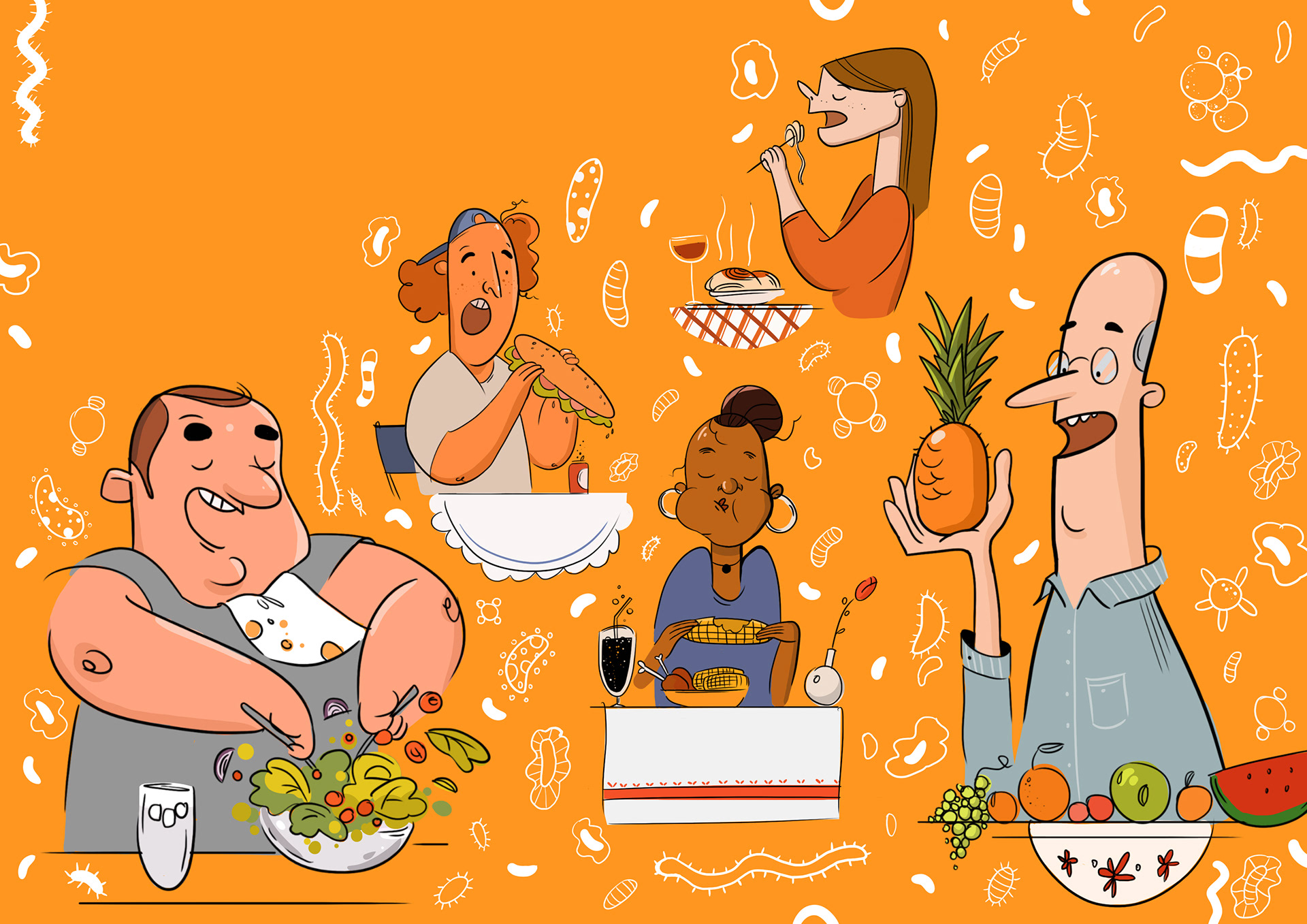 Opener Editorial illustration about an individual germs and diet for each one of us